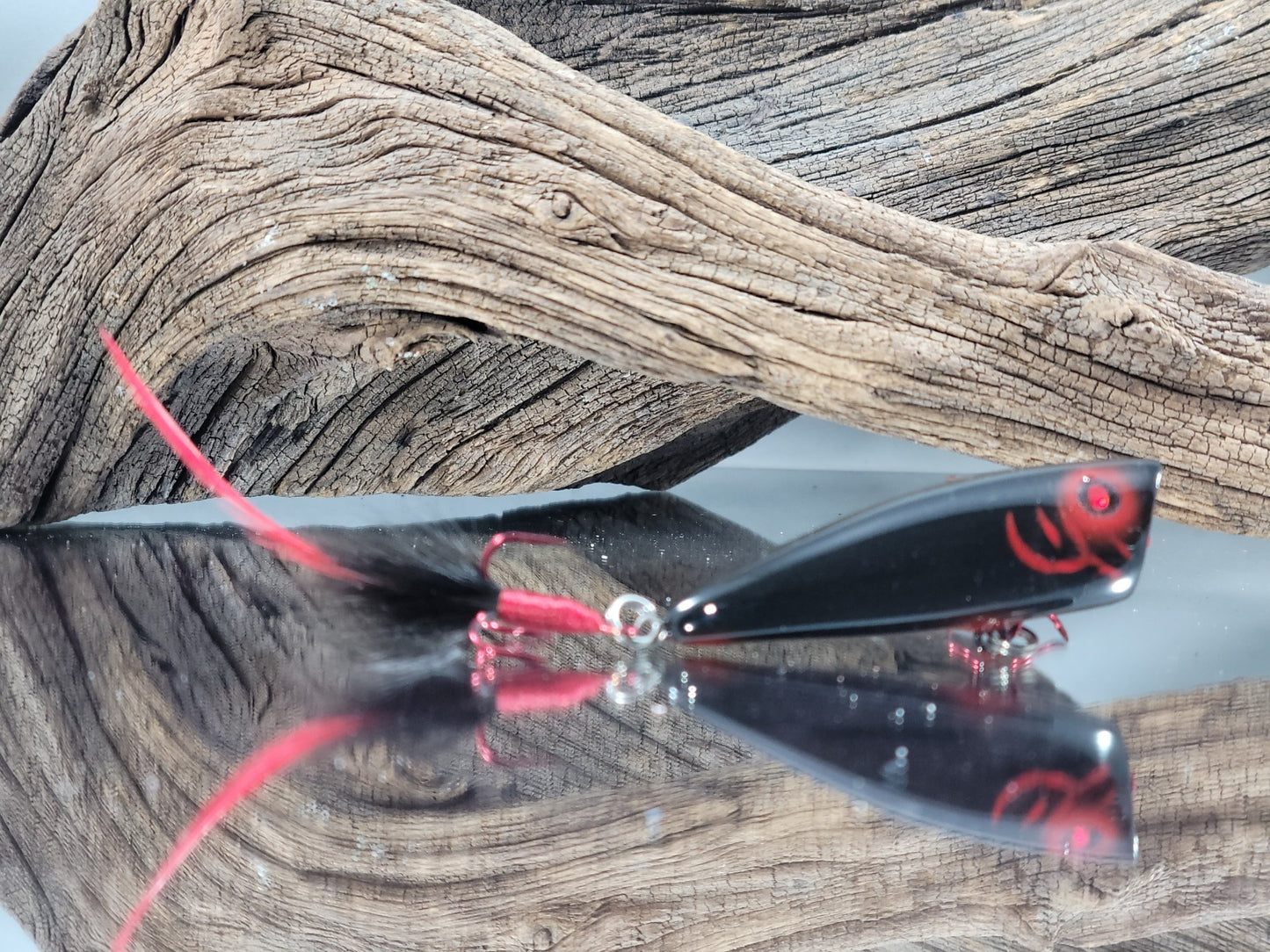 The Original Black Mamba Popper: From our signature Black Mamba collection, this topwater popper is designed to create a disturbance on the surface, mimicking a struggling baitfish. The holographic finish reflects light in multiple directions, creating a visual strike trigger that's irresistible to bass waiting below.